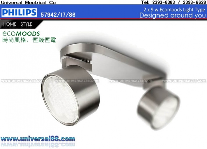 PHILIPS 2 x 9 W瓦時尚壁燈 - (環保燈飾) -