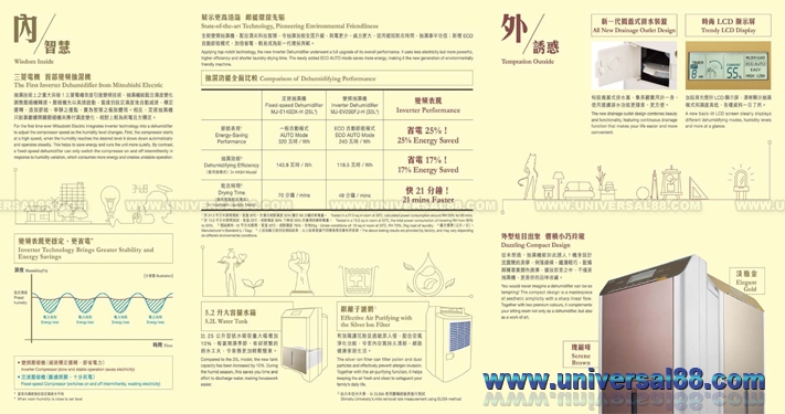 特點: 三菱電機首部變頻抽濕機, 變頻表現更穩定, 更省電