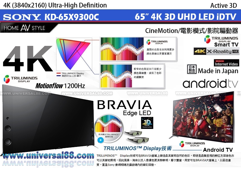 特點: 4K X-Reality Pro處理器, 1200Hz暢動流, TRILUMINOS 顯示技術, 分區背光控制技術