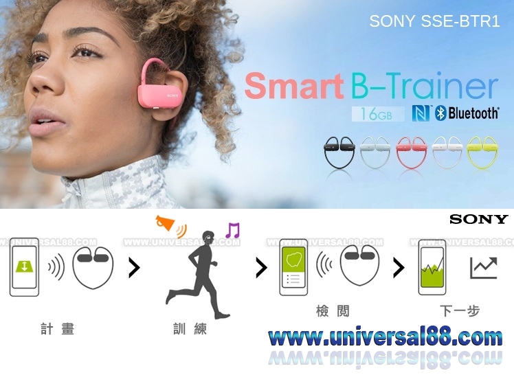 原廠一年保用 SONY SSE-BTR1/Y BLUETOOTH 藍芽立體聲免提 Smart B-Trainer 運動裝置(SSE-BTR1) 6種感測器: 心跳率感應器, GPS, 指南針, 加速度計, 陀螺儀和氣壓計於一身, 能記錄多達11種訓練數據 小巧機身內置6種感測器計算及記錄各項數據 心跳數據更可通過即時計算, 結合訓練清單設定及其他因素, 播放適合節奏的音樂以調節心跳速率 語音導航更可自訂提示時間, 距離, 內容更可因應訓練目的自訂提示數據 於進行訓練時, 語音指引 / 指導會定時提供資訊, 例如您目前的心跳速率和已跑距離, 讓您能專注於訓練上並知道自己 目前的健身情況, 無須查看螢幕或操作任何按鈕 此外, 在付費訓練選單中, 專業教練會以音訊指引提供訓練提示, 藉此更有效地進行訓練 擁有語音記事功能 按住智慧型隨身教練 (SSE-BTR1) 的「備忘」鍵, 當語音指引出現後, 即可錄製自己的聲音, 您可以錄下於跑步時出現的點子和想法 可當作藍芽耳機使用~可連續播放13hr小時的歌曲 5.5小時訓練和音樂(內置儲存) 3小時訓練和音樂(串流) IPX5可沖洗 / 防塵 可在游泳時使用 記憶容量: 16GB (可用儲存容量可能有變化) USB: 高速USB (兼容USB 2.0) 感應器: 心跳率, GPS, 加速度計針, 陀螺儀, 電子羅盤, 氣壓 防水功能: IPX5/ IPX8(IEC 60529)或等效 最高記錄歌曲數量及時間: MP3 128 kbps: 3900, Linear PCM 1411 kbps: 360 操作溫度: 5 °C 至 35 °C 麥克風: 單聲道 輸出: 頻率響應 20至20,000 Hz (於播放數據檔案時,以單一訊號與訊號方式計算) 支援音樂格式 MP3 媒體檔案格式: MP3(MPEG-1 Layer3) 檔案伸延: .mp3, 比特率: 32至 320kbps (支援可變比特率 (VBR)), 取樣頻率*7: 32, 44.1, 48kHz WMA*8 媒體檔案格式: ASF 檔案伸延: .wma, 比特率: 32 至 192kbps (支援可變比特率 (VBR)), 取樣頻率*7 : 44.1kHz Linear-PCM 媒體檔案格式: Wave-Riff 檔案伸延: .wav 比特率: 1411kbps, 取樣頻率*7: 44.1kHz AAC*9 媒體檔案格式: MP4 檔案伸延: .mp4,.m4a,.3gp; 比特率: 16 至 320kbps (支援可變比特率 (VBR))*10; 取樣頻率*7: 8, 11.025, 12, 16, 22.05, 24, 32, 44.1, 48kHz 通訊系統:藍牙規格4.0版本 藍牙規格功率等級2 最大通訊範圍: 約10 米的直線範圍 (30英尺) 頻率波段: 2.4 GHz 頻段(2.4000 GHz - 2.4835 GHz) 相容的藍牙設定檔: A2DP / AVRCP / HFP / HSP / SPP 兼容的編碼解碼器: SBC*5 / AAC 內置可充電鋰離子電池;以USB充電(由電腦透過配備的連接線) 充電時間: 約 1.5小時 (經USB充電) 電池壽命: 訓練模式啟動: GPS 開啟: 約 3小時/約 4.5小時, GPS 開啟 (省電模式): 約 3.5小時/約 5.5小時, GPS 關閉: 約 4小時/約 6小時 音樂播放: GPS 開啟: 約 3.5小時/約 5小時, GPS 關閉: 約 6小時*6/約 13.5小時 重量: 約 43g Remark: Price not including smartphoe <價格不包括智能手機>