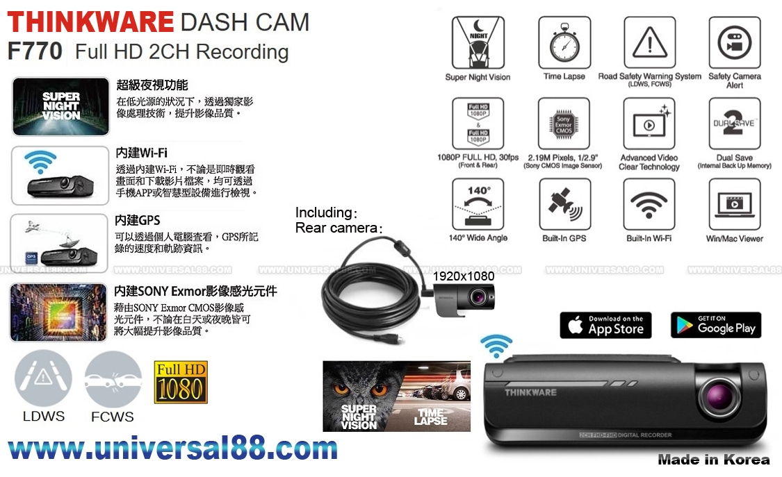 (24Hr錄影泊車模式移動偵測) (超級夜視, 全港快相位提示) (Wi-Fi連接手機, 內置GPS) (韓國製造Made in Korea) 送原廠Thinkware長火電源線 分期付款 : 每月HKD $199 (共12個月) LASTUPDATE: 10-10-2020