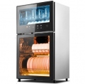 特點: LED溫度題示, 雙層隔熱玻璃, 上層低溫臭氧殺菌, 下層光波變頻高溫消毒