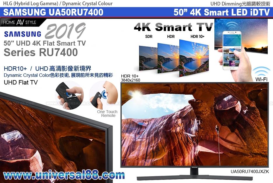 SAMSUNG UA50RU7400 50" 4K平面超高清智能電視