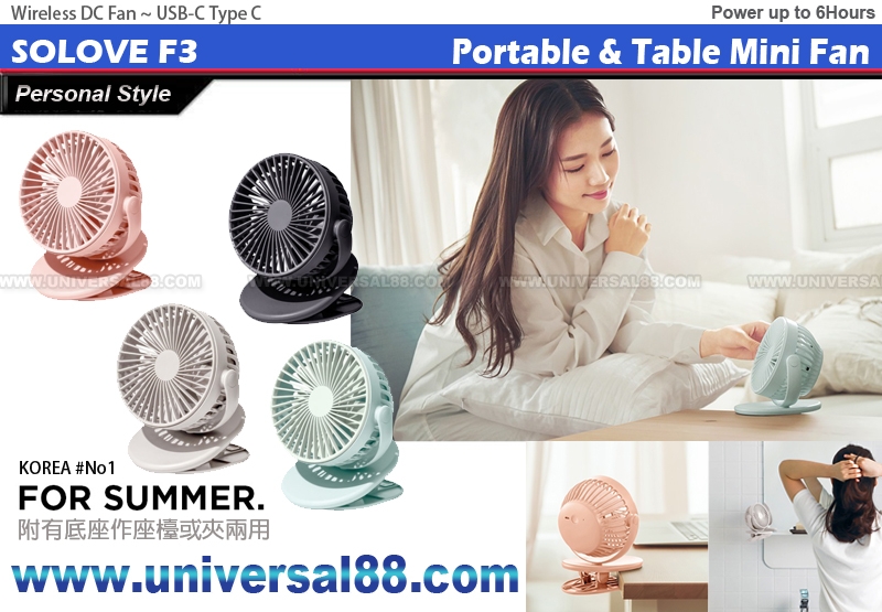 (360°全方位旋轉, 全方位清涼) (3段電子風力調節最高風力) (充滿電可以使用6Hr小時) (USB-C Type C快速充電方式) (附有底座作座檯 或 夾兩用) (原廠一年保用 ~ 香港行貨) 附有底座作座檯及夾風扇使用 LASTUPDATE: 28-03-2024
