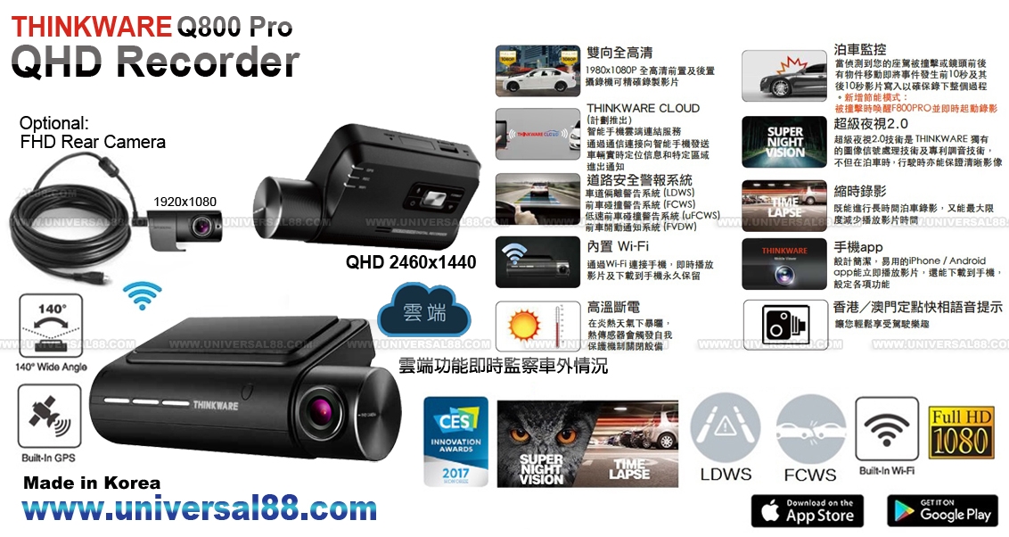 THINKWARE Q1000(套裝)韓國 前後鏡頭全高清汽車黑盒