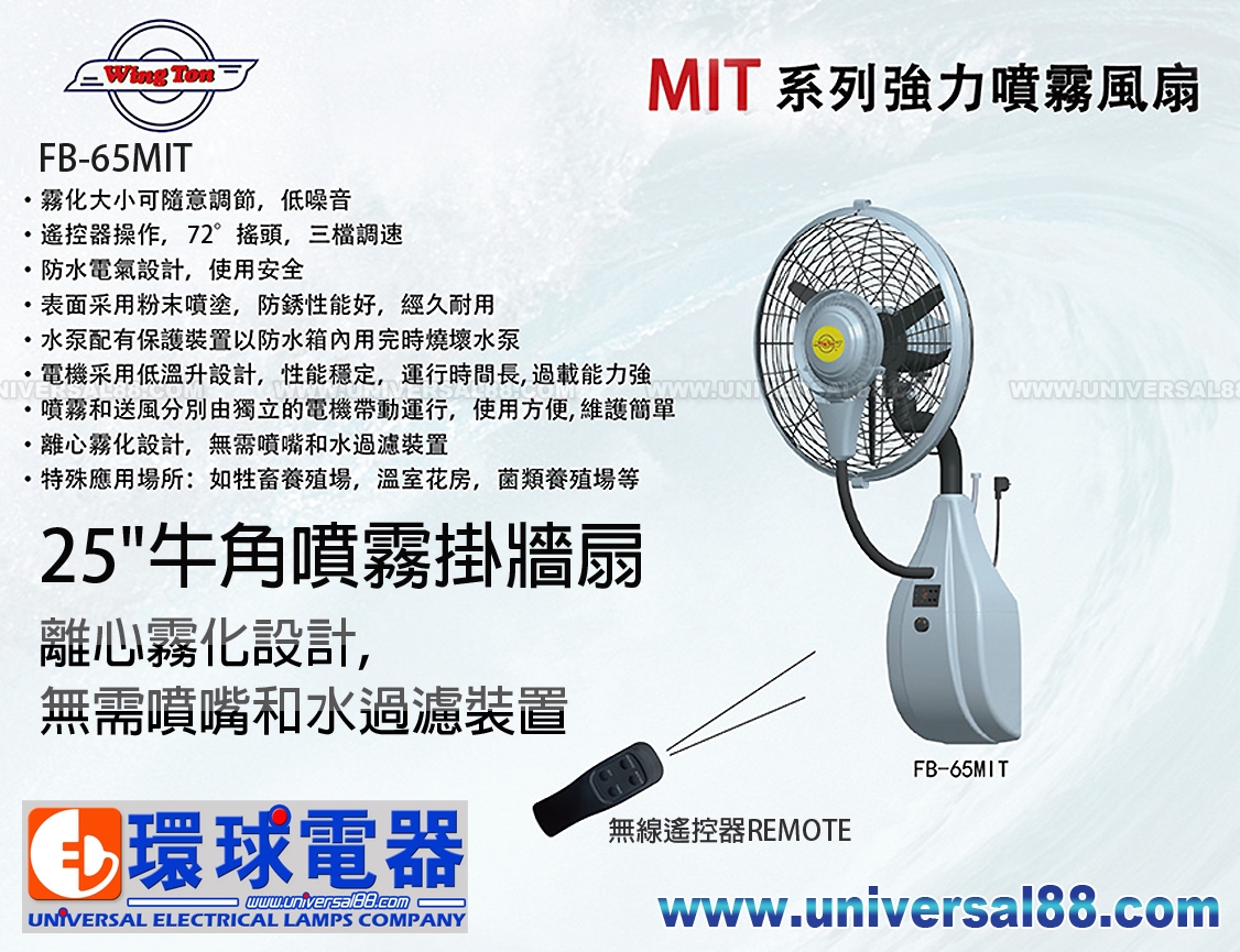 WINGTON FB65-MIT(遙控)榮通 25"牛角噴霧掛牆扇