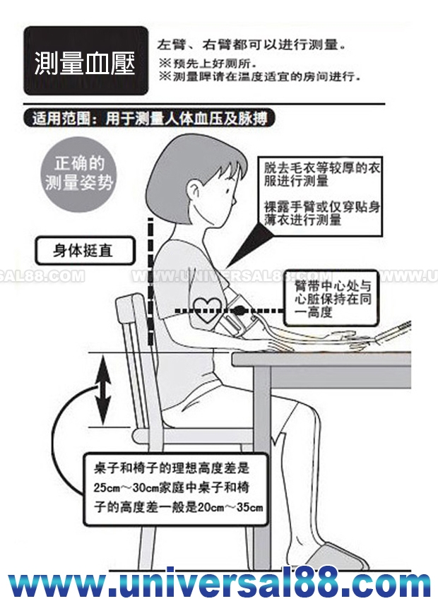 特點: 全自動測量血壓及脈搏顯示, 心律紊亂的情況下發出警告