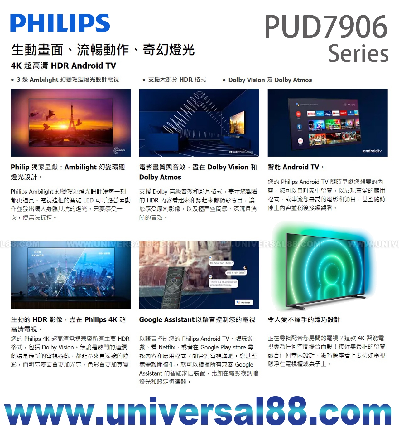 特點: Ambilight三邊環廻燈光, Netflix & YouTube & OK Google
