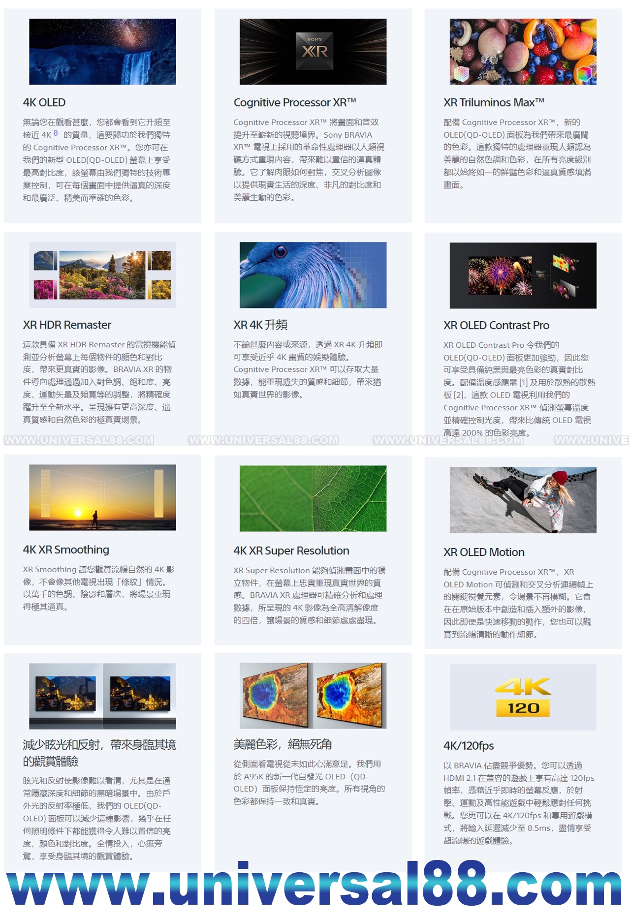 特點: 獨有Cognitive Processor XR讓每個動作均美麗清晰, 日本製造